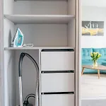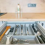 Lägenheten har ett kök med kylskåp, tvättmaskin och köksredskap samt strykutrustning, balkong och strykjärn med strykbräda. Gäster kan koppla av i rummen med en terrass. Stället består av 1 sovrum.